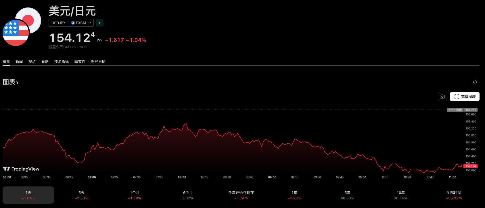 美元全线走软,而日圆则在日本首相高市早苗周日向市场发出警告以及周五有迹象表明美国可能与日本联手捍卫日元汇率后走强,美元兑日圆(USDJPY)汇率在今晨一度跌破155关卡,撰稿当下已回落至154.11。上周,由于美国政策走向难以预测、美欧之间的关税紧张局势以及对美联储独立性的质疑再度出现,美元创下5月以来最大跌幅。
